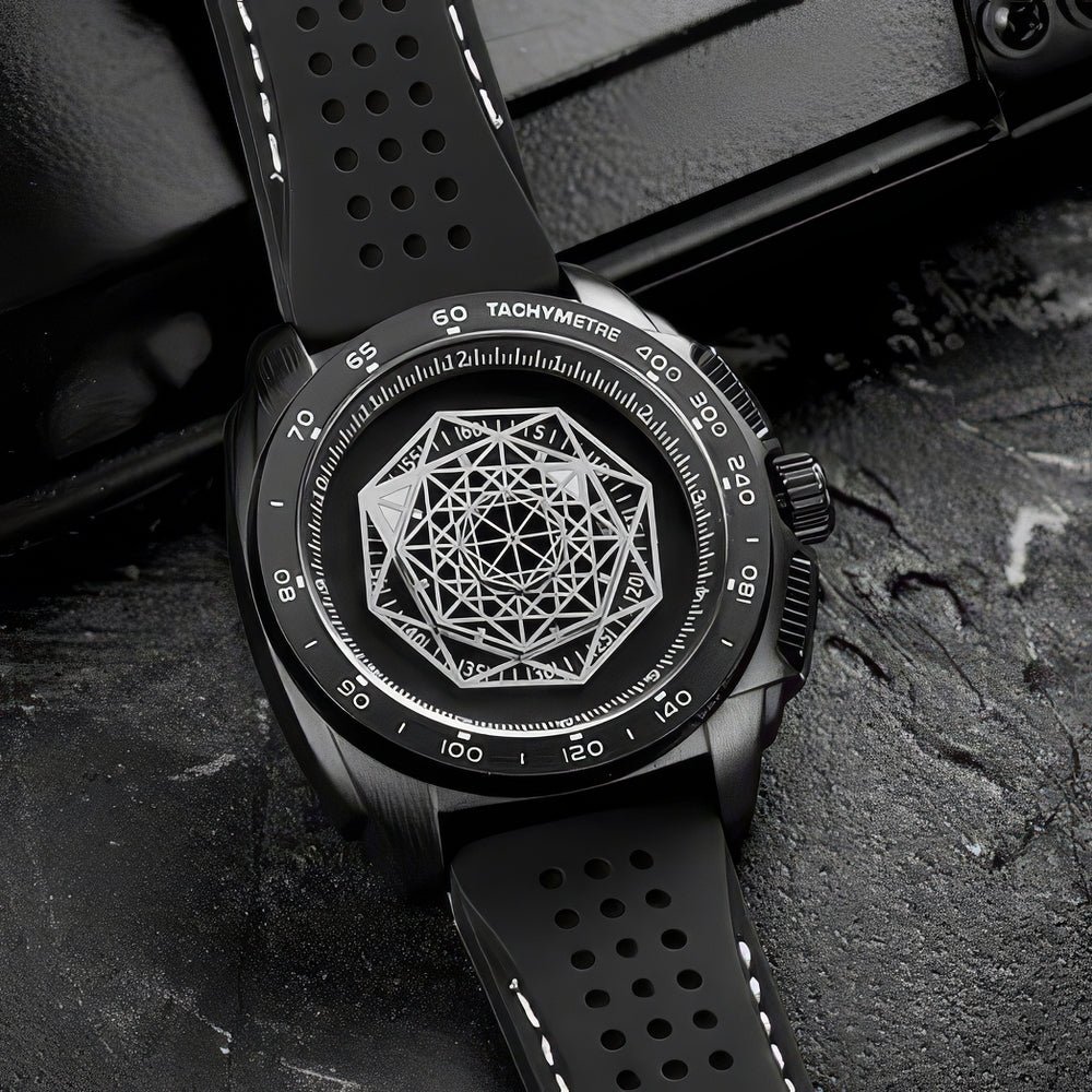 GEOMETRIC ARTISTRY IN DESIGN: A stunning geometric pattern adorns the dial, adding a modern and artistic touch. This intricate design ensures your watch stands out as a statement piece for any occasion.