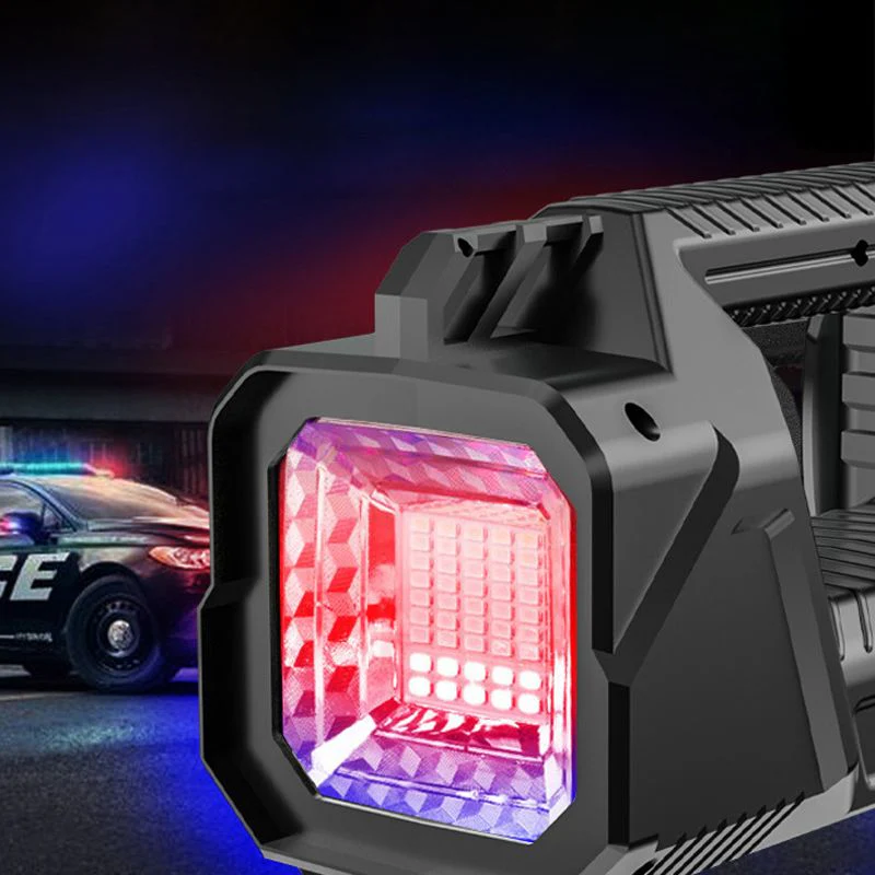 Six Gears Dimming – The double-head spotlight features 6-gear dimming which allows you to switch between a strong light, medium light, and flash mode, making it applicable to all scenes. The red & blue flash mode at the backlight is for emergency warnings and seeking help.